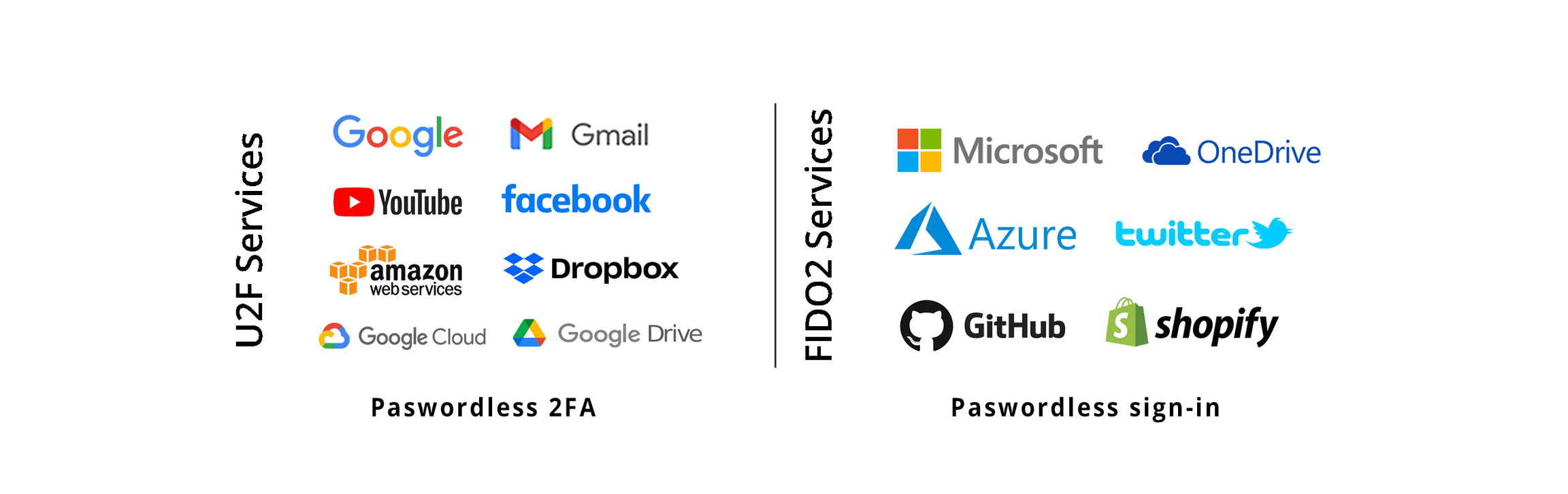 Instructions for setting up passwordless login can be found on sites that support FIDO2 and FIDO U2F specifications (e.g. Google, Microsoft, Facebook, Twitter, Dropbox, and other platforms). You can review the full list of sites supporting FIDO2 and FIDO U2F standards here.
