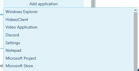 and select one from the list of applications running on your computer. If the application is not listed, it must be launched. Follow the same procedure to add the next application.