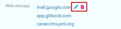 You can add an unlimited number of website addresses to a single account. You can delete or edit them by hovering over the address line and clicking the corresponding icon.
