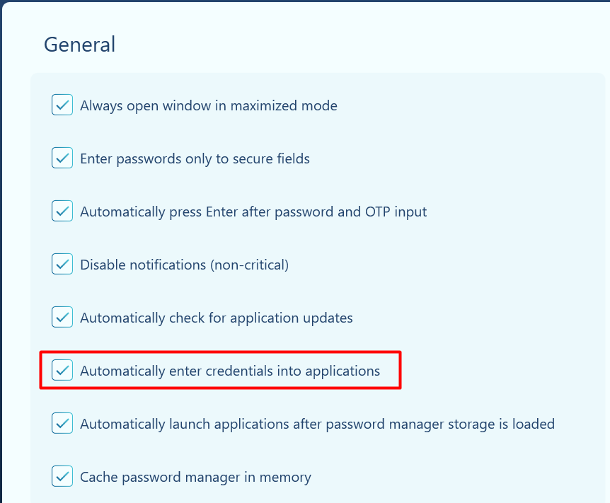 If the computer name and/or username displayed by the credentials prompt doesn’t match those saved in the password manager, automatic credentials entry will not be performed.