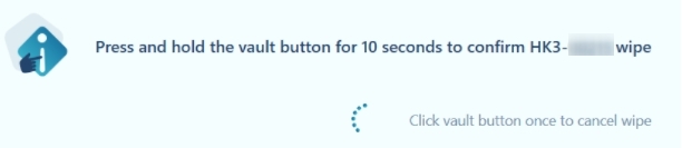 Once you confirm the wipe, the button will flash yellow, press and hold it for 10 seconds.
